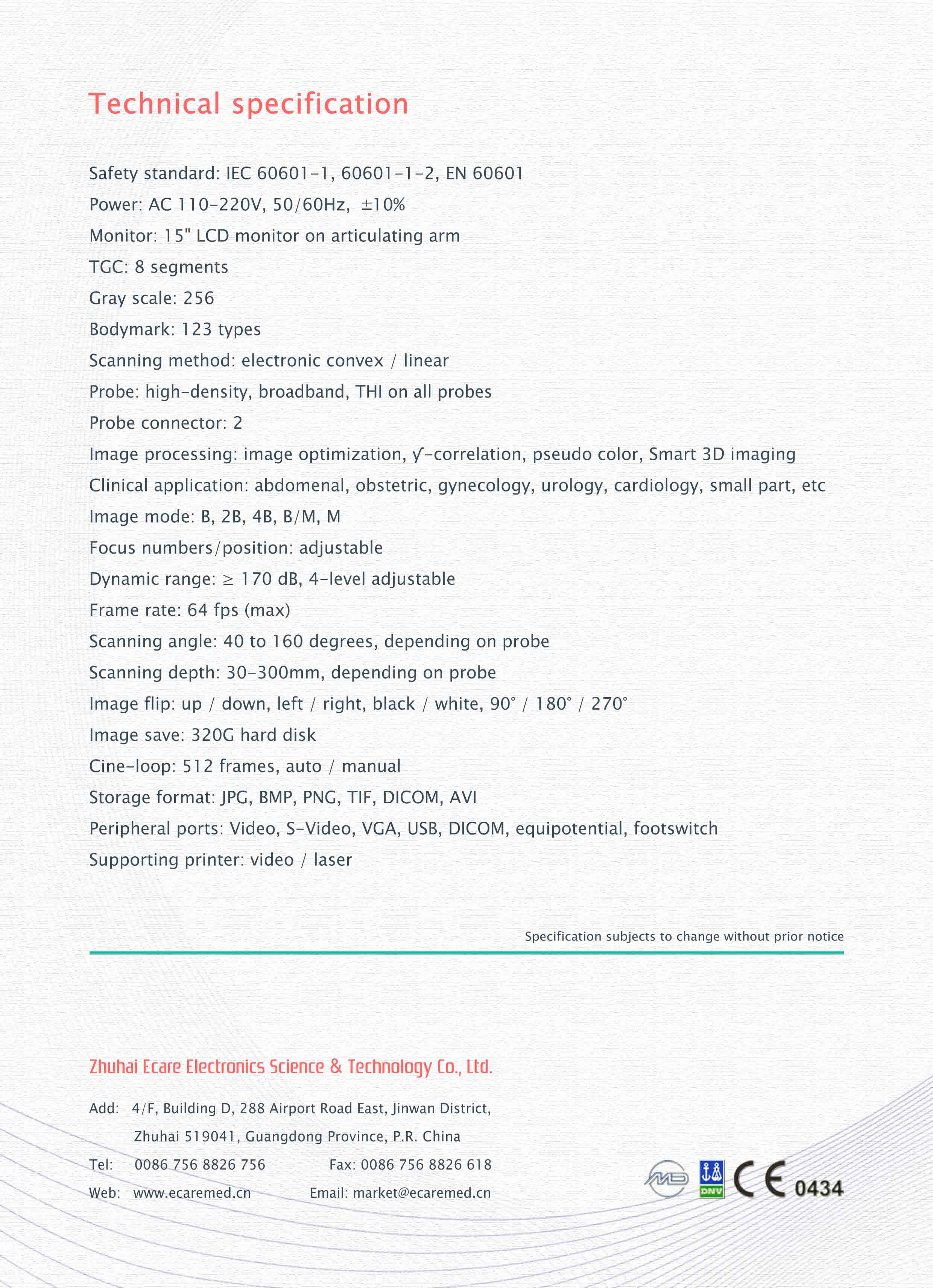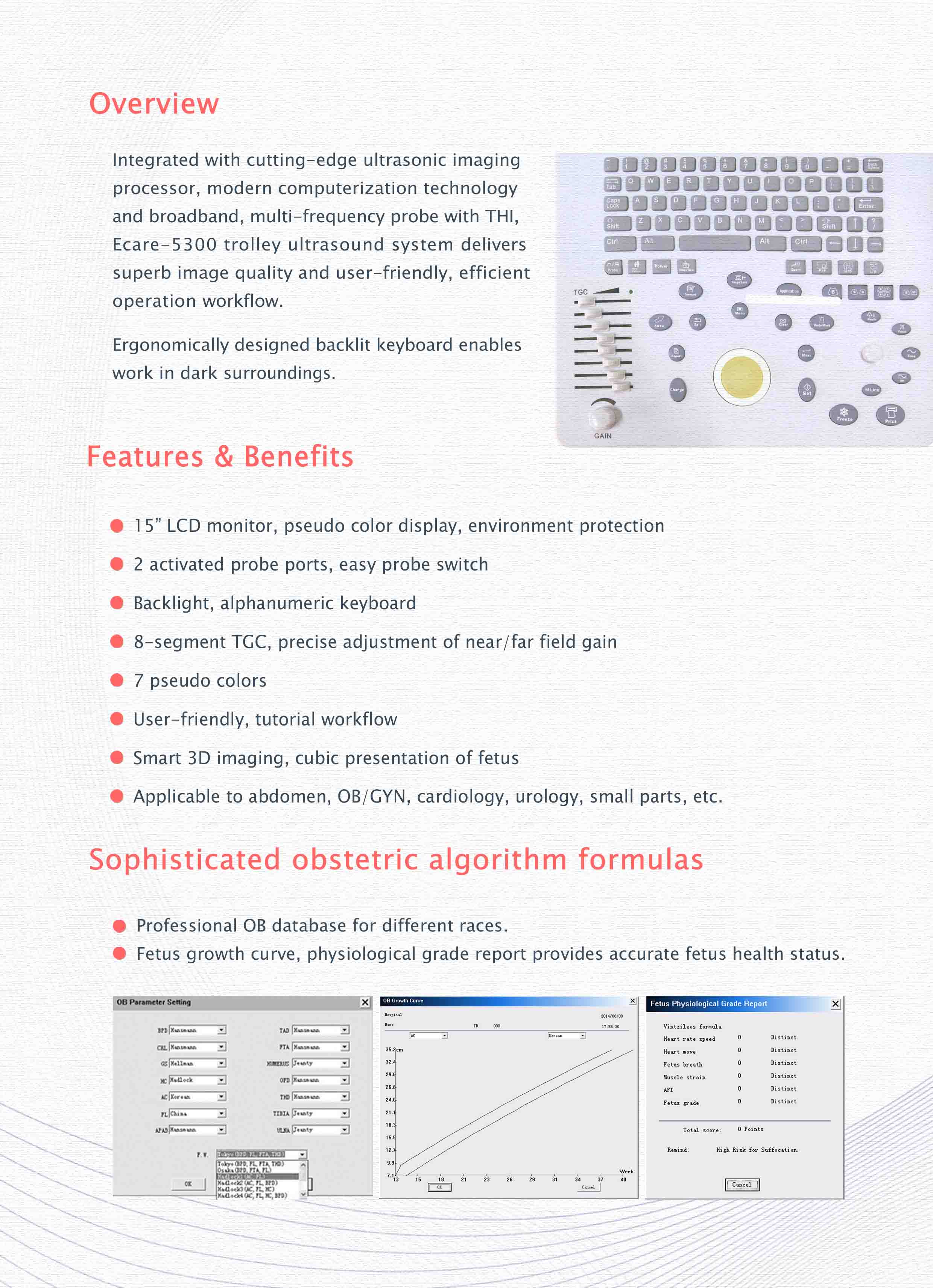 manufacturing of medical ultrasound image systems since 2007. Ecare-5300 is a fully digital, black and