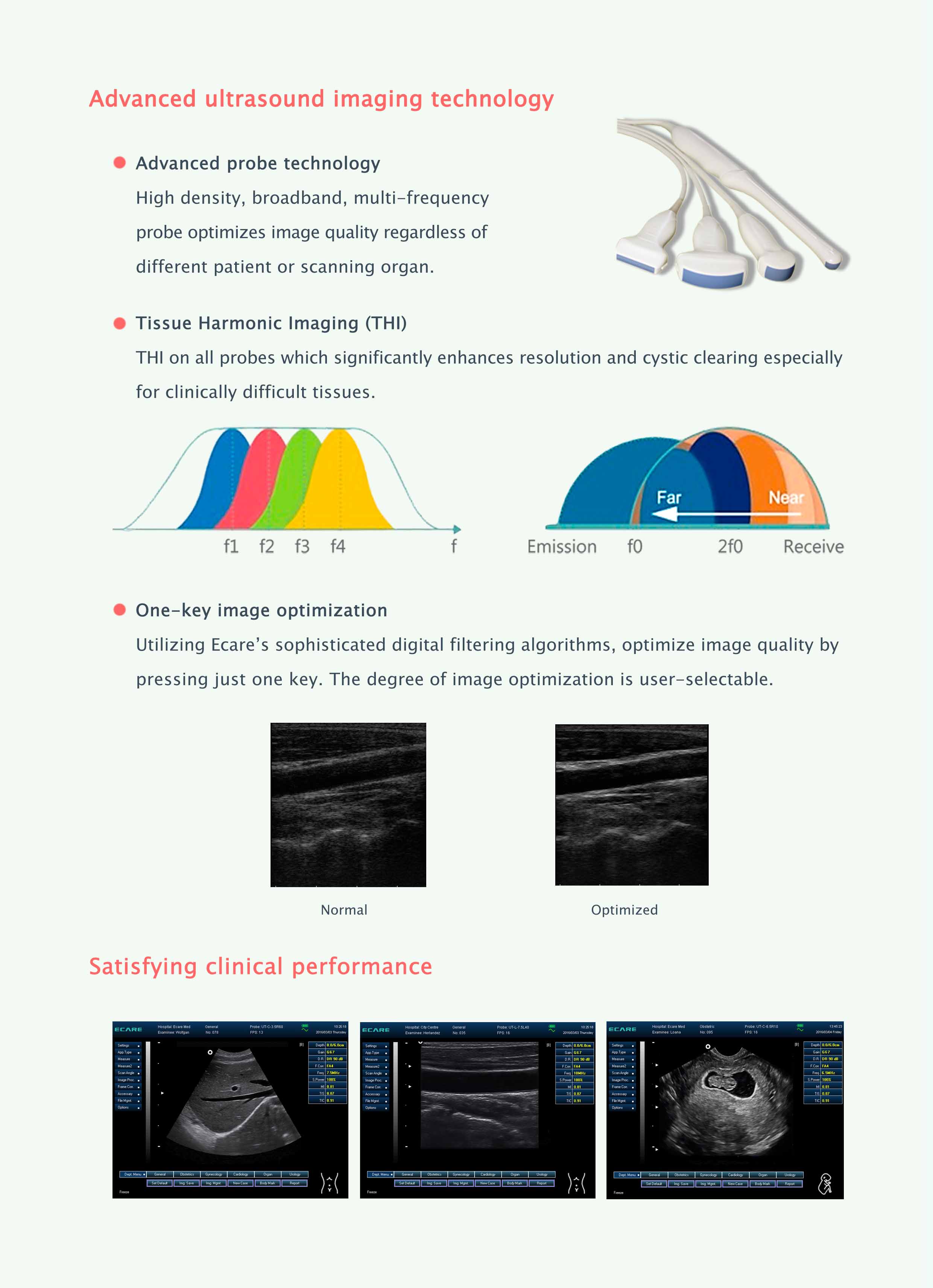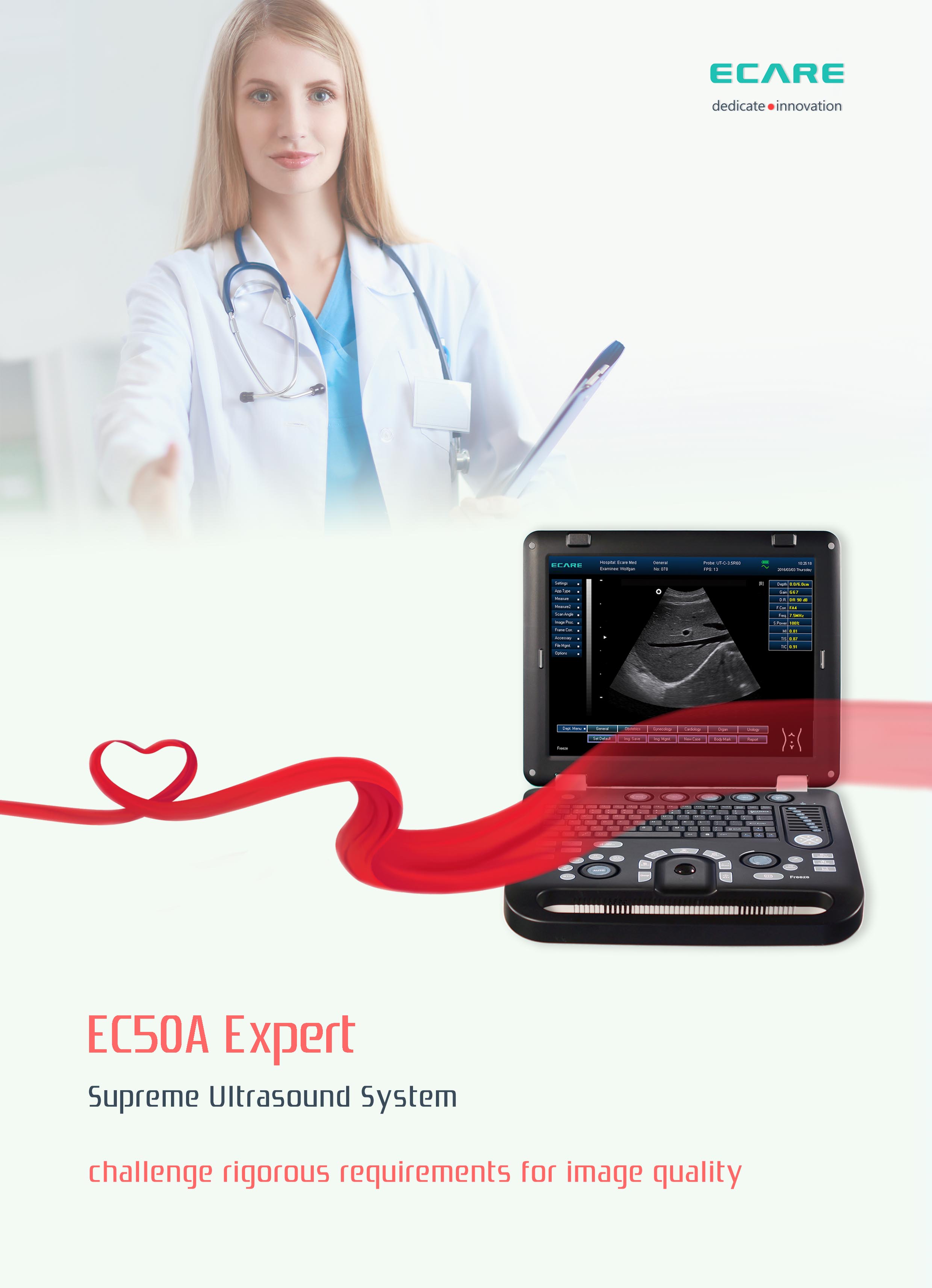 Consists of 64-channel ultrasonic processing unit and 128 element probe, EC50A Expert delivers superb image quality in respect of resolution, sensitivity and penetration.